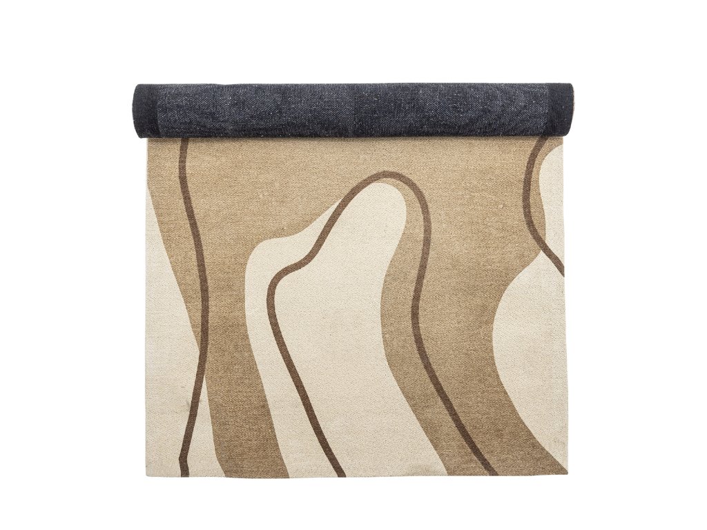 Koberec Volano od společnosti Bloomingville má plynulý abstraktní vzor, který vytváří pocit pohybu. Vzor se skládá ze zakřivených linií v tmavě hnědé barvě, které se elegantně vlní po povrchu koberce a rámují lehké organické tvary. Koberec je proveden v odstínech béžové a hnědé barvy, což přispívá k hřejivé a příjemné atmosféře.Doplňkové parametry