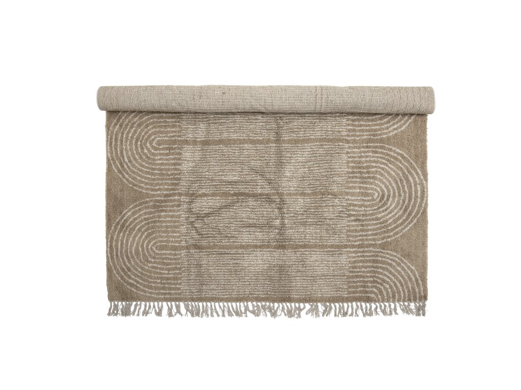Koberec Zeynep od společnosti Bloomingville je tkaný z bavlny a má krásný všívaný vzor a ozdobné třásně na koncích. Koberec teplé barvy vnese do každého domova útulnou atmosféru.Doplňkové parametry