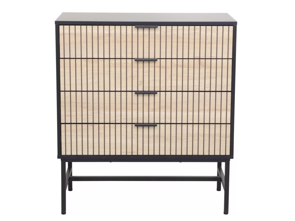 Komoda, vrchní deska: laminovaná deska, rám: kov, barva: dub + matná černá / černá.