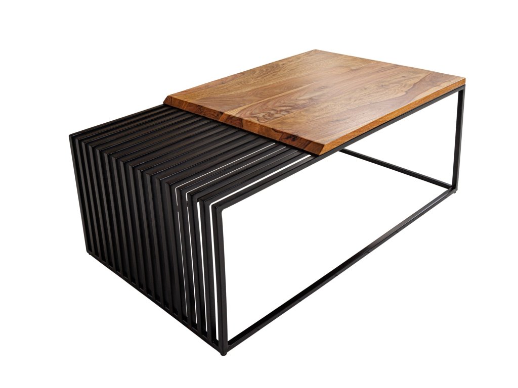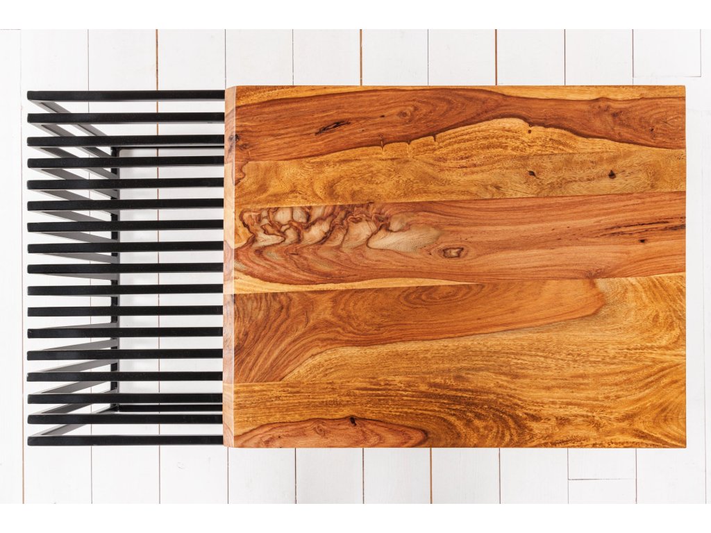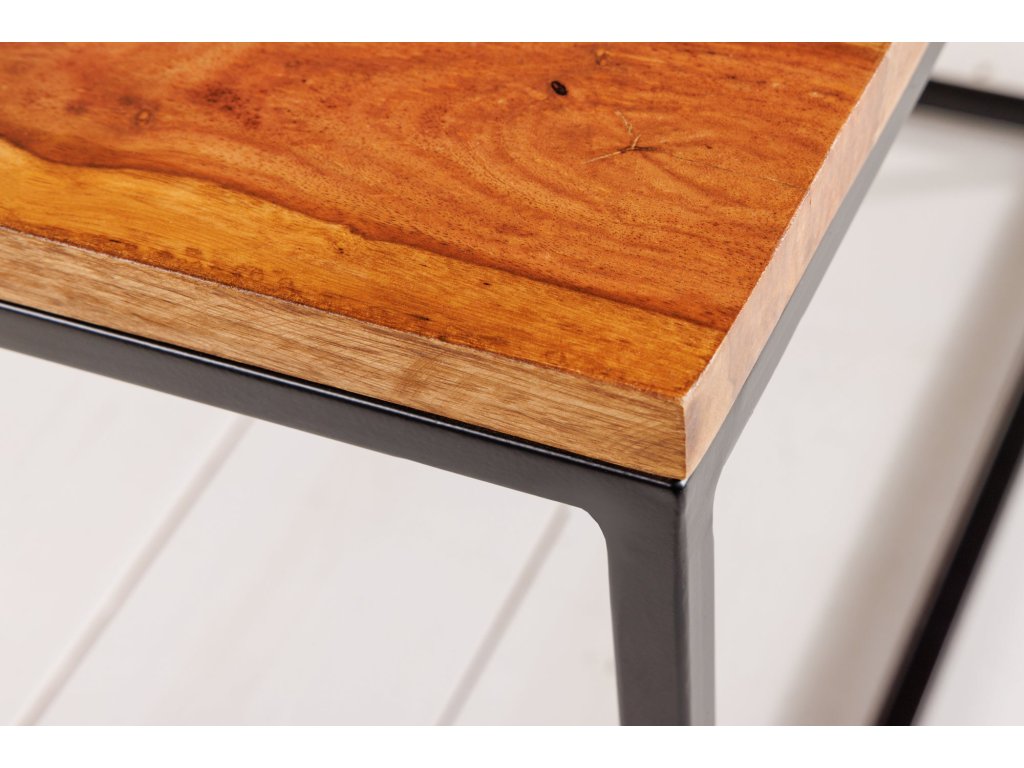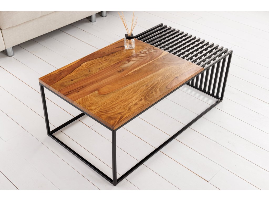 Konferenční stolek ARDEN 100 cm je jedinečný kus nábytku, který vyniká kontrastem přírodního dřeva a černého kovu. Horní deska je vyrobena z masivního lakovaného sheeshamového dřeva, jehož teplý odstín a přirozená kresba dělají z každého stolku originál.