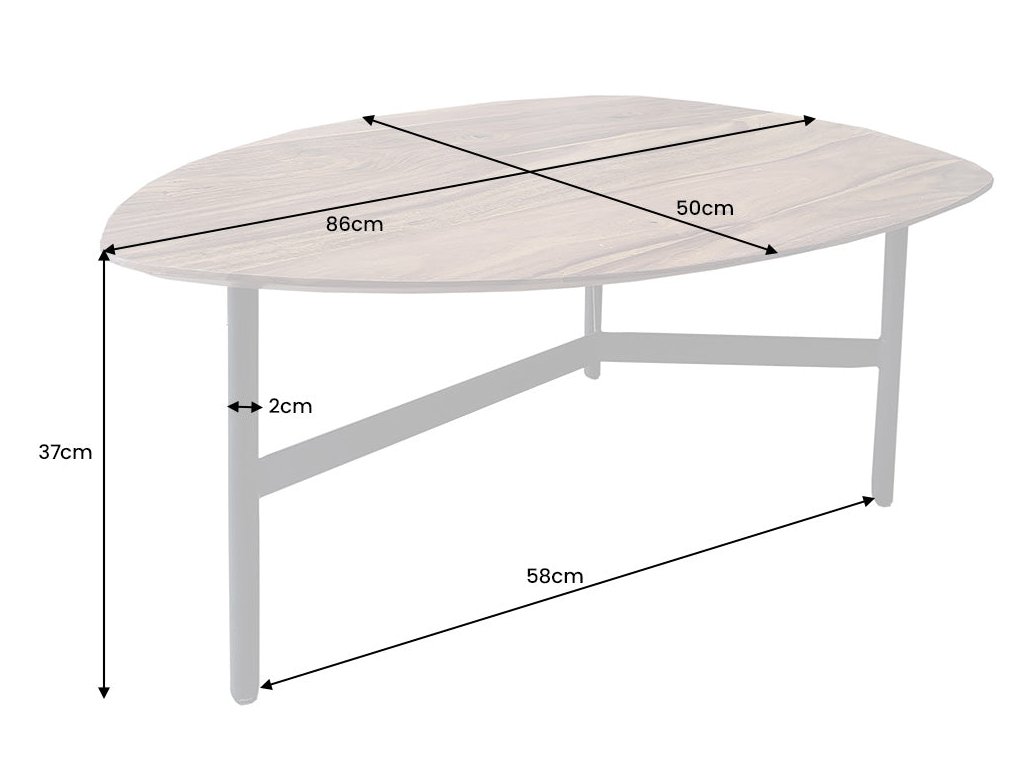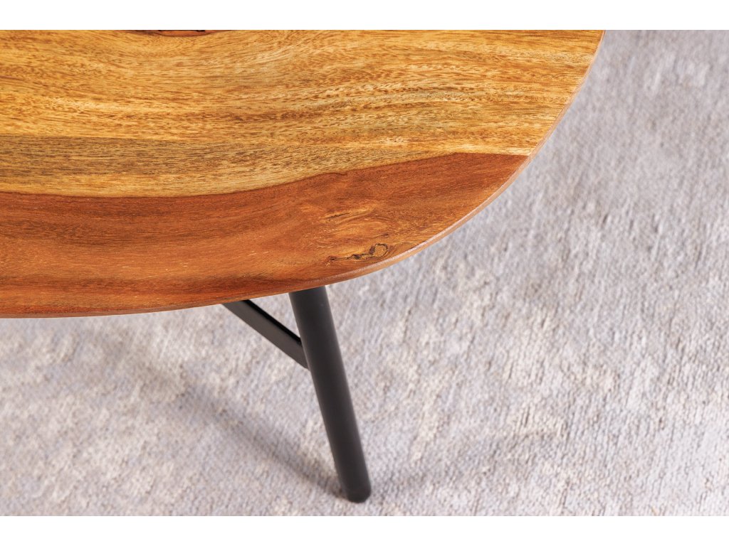 Stolek Beauty by Nature (86 × 50 cm) je ručně vyrobený z kvalitního lakovaného sheshamového dřeva, které se pyšní přirozenou kresbou a teplým odstínem. Deska má jemně oválný tvar, jenž působí vzdušně a zároveň elegantně.