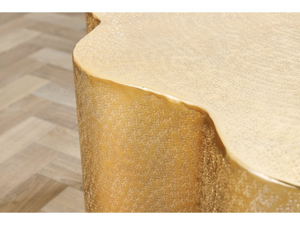 Originální organický tvar stolku dodává prostoru dynamiku a osobitost. Každý kus je ručně vyrobený originál, který se může jemně lišit ve struktuře i odstínu, což podtrhuje jeho autentický charakter. Ideální pro moderní, industriální i glamour interiéry.