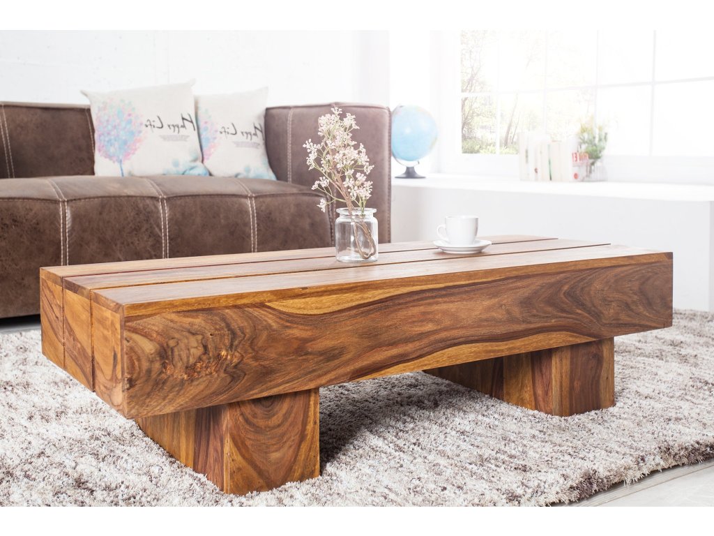 Konferenční stolek BOLT – masivní sheeshamové dřevo / přírodní / 100 cm