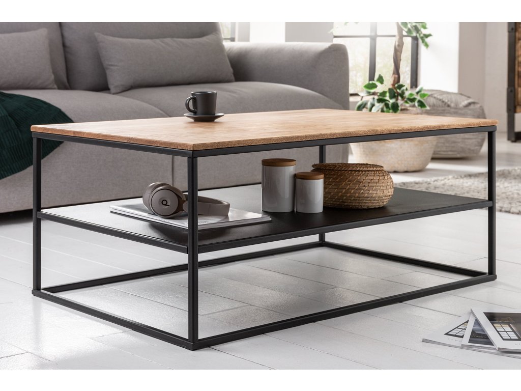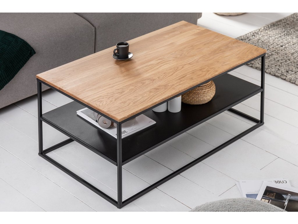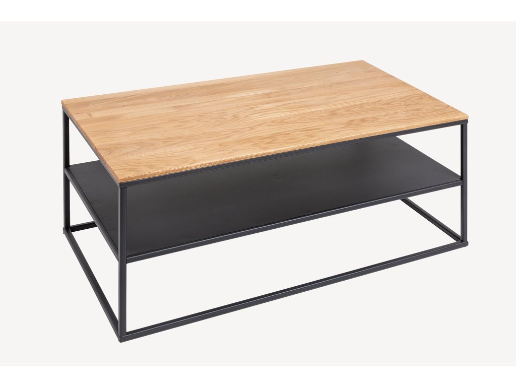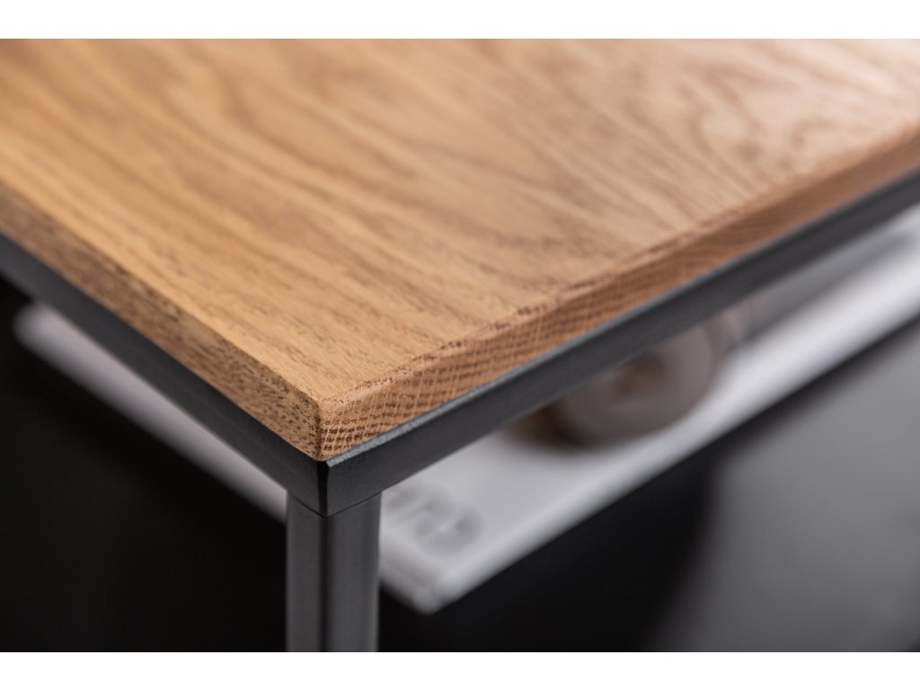 Konferenční stolek BYT 95 cm kombinuje teplý vzhled přírodního dubového dřeva s chladnou elegancí černého kovu. Horní deska z masivního dřeva je naolejovaná, což zvýrazňuje přirozenou kresbu dřeva a chrání jej před poškozením. Pevná kovová konstrukce dodává stolku stabilitu a industriální charakter. Díky praktické spodní polici nabízí stolek dostatek prostoru pro odložení knih, ovladačů nebo dekorací. Perfektní volba pro ty, kteří hledají funkční a nadčasový kus nábytku do obývacího pokoje.