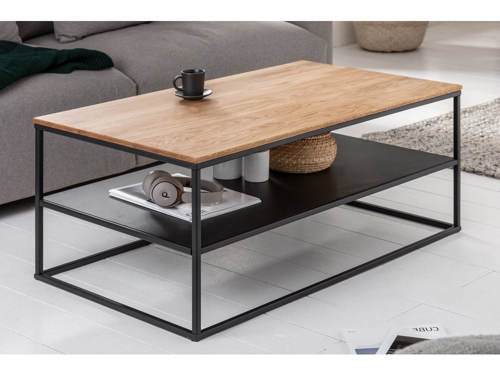 Konferenční stolek BYT – masivní dubové dřevo a kov / přírodní / 95 cm