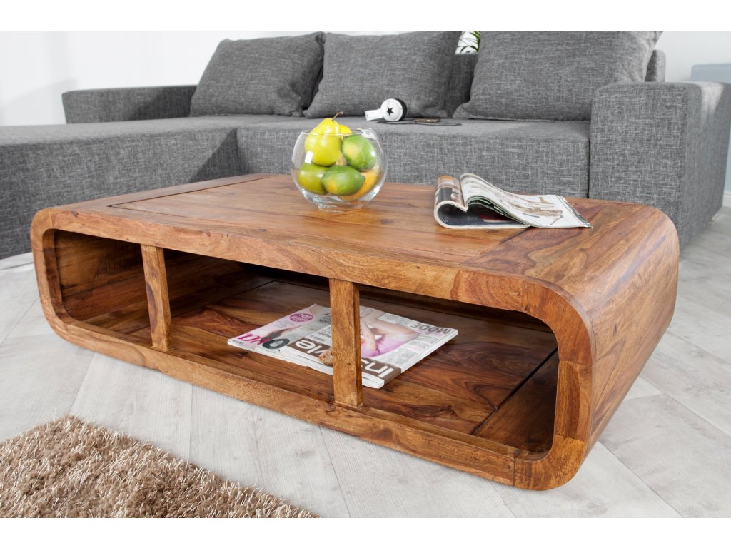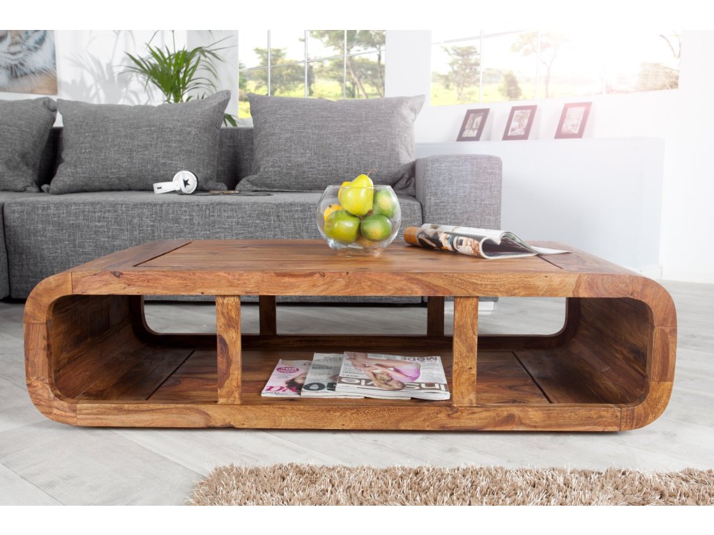 Konferenční stolek CURVED – masivní sheeshamové dřevo / přírodní / 100 cm