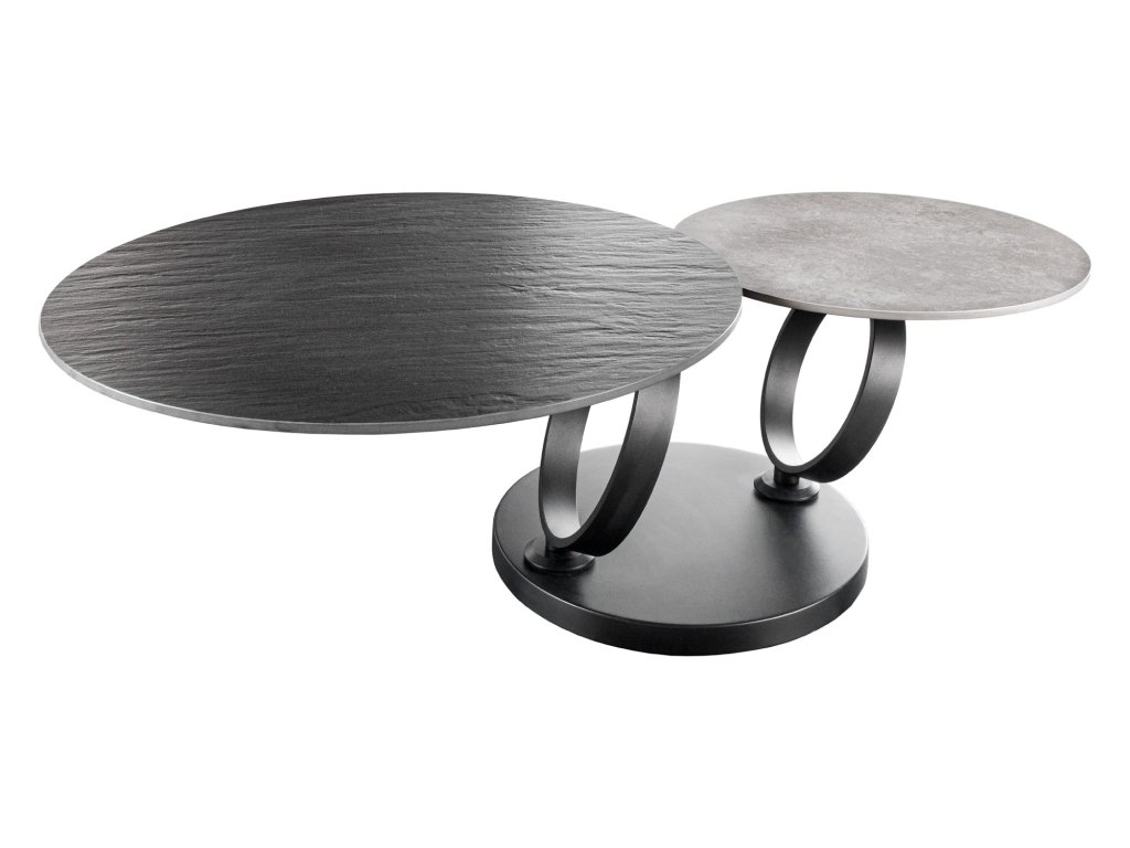 Konferenční stolek DANCING RINGS 80-134cm otočný keramický černo-šedý