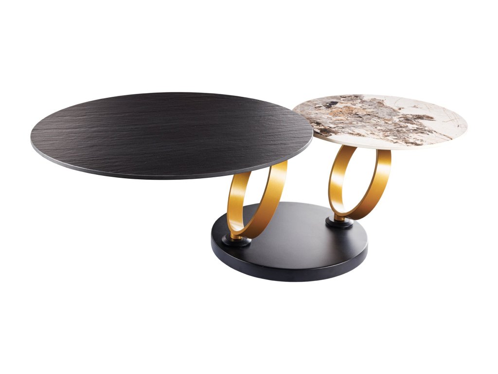 Konferenční stolek DANCING RINGS 80-134cm otočný keramický černý a vzhled přírodního kamene