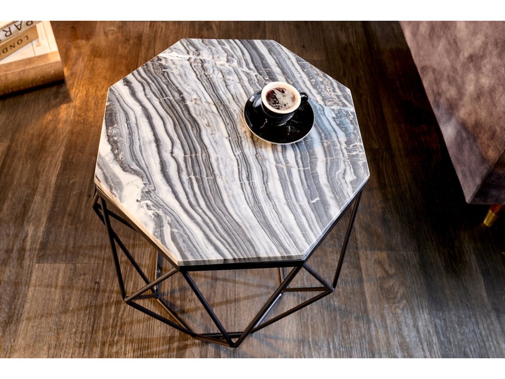 Konferenční stolek DIAMOND – mramor a černý kov / šedá, černá / 50 cm