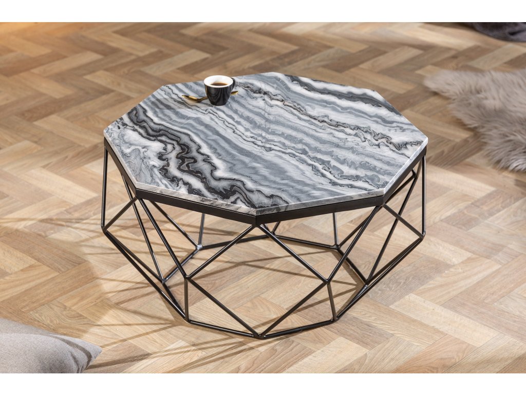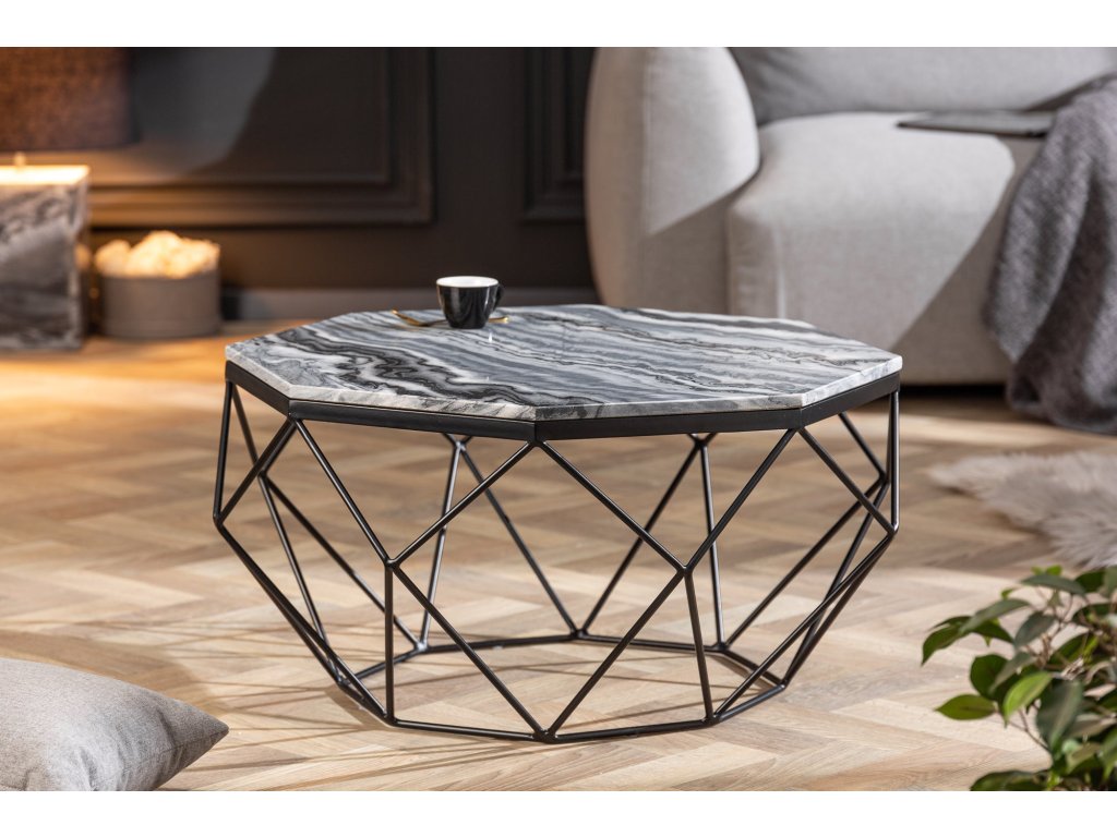Konferenční stolek DIAMOND – mramor a černý kov / šedý / 70 cm