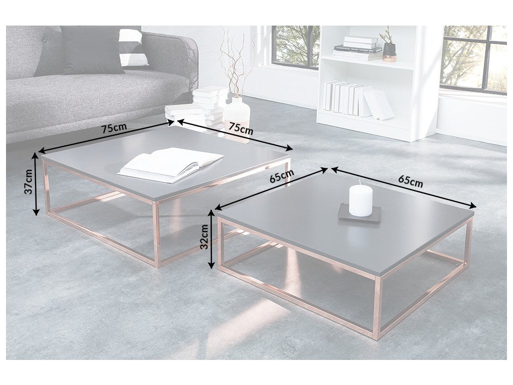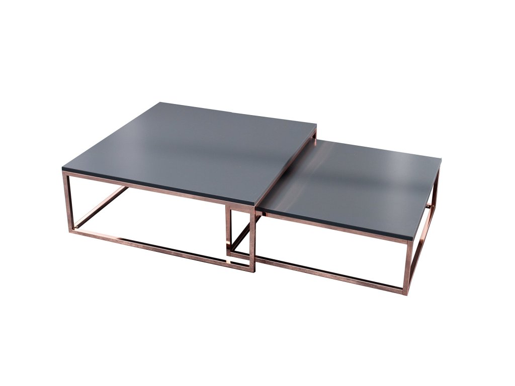 Minimalistické linie doplněné bronzovým kovovým rámem dodávají sestavě luxusní a originální charakter. Sada je ideální jako konferenční stolek do obývacího pokoje, kde se stane výrazným designovým prvkem moderního interiéru.