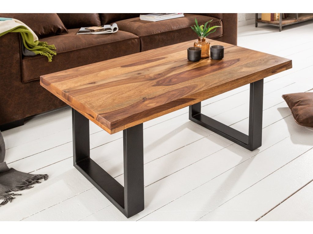 Konferenční stolek IRON CRAFT 100cm U-nohy ze sheeshamového dřeva
