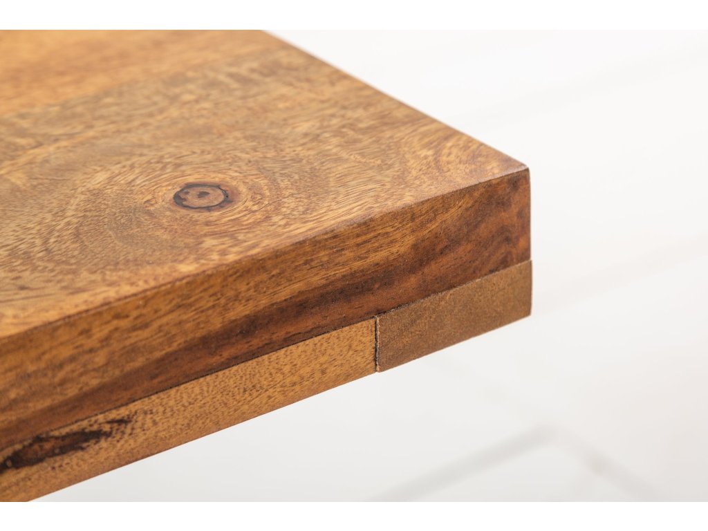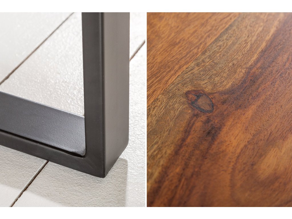Konferenční stolek IRON CRAFT vyniká kvalitním zpracováním a nadčasovým vzhledem. Deska z masivního sheeshamového dřeva s přirozenou kresbou dodává interiéru teplo a originalitu, zatímco robustní kovové nohyzajišťují vysokou stabilitu a dlouhou životnost.