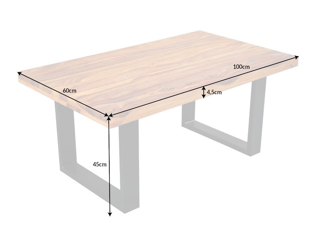 Obdélníkový tvar a rozměr 100 × 60 cm poskytují dostatek prostoru pro každodenní použití – od kávy až po dekorace. Stolek se skvěle hodí do moderních, industriálních i rustikálních interiérů.