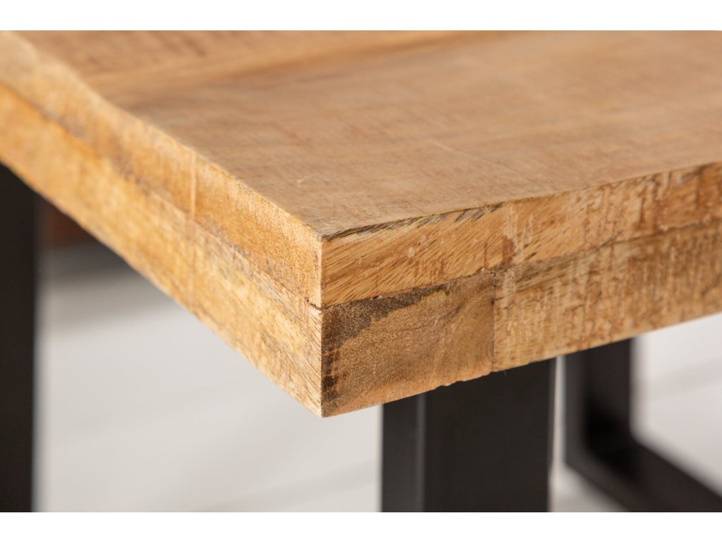 Masivní dřevěná deska je odolná a vhodná pro každodenní používání. Jednoduchá kovová konstrukce zajišťuje stabilitu a umožňuje snadné kombinování s dalším nábytkem.