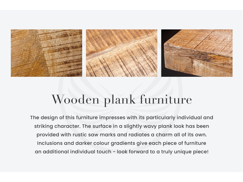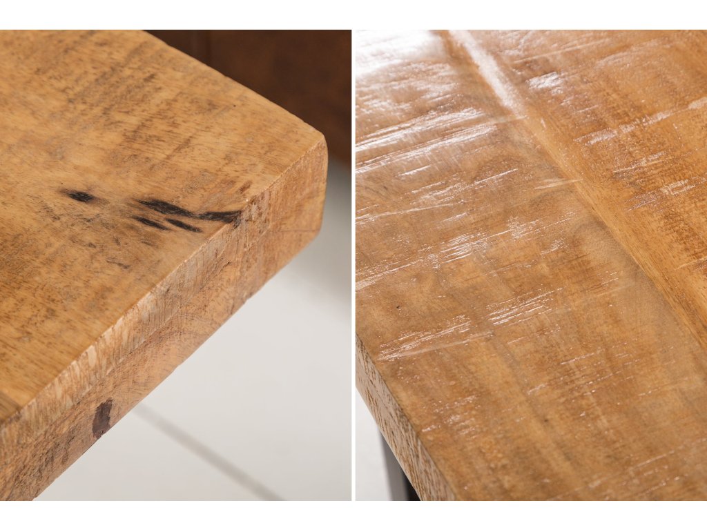 Konferenční stolek IRON CRAFT vyniká kvalitním zpracováním a nadčasovým designem. Horní deska z masivního mangového dřeva s přirozenou kresbou dodává interiéru teplo a originalitu, zatímco stabilní kovové nohy zajišťují pevnost a dlouhou životnost.