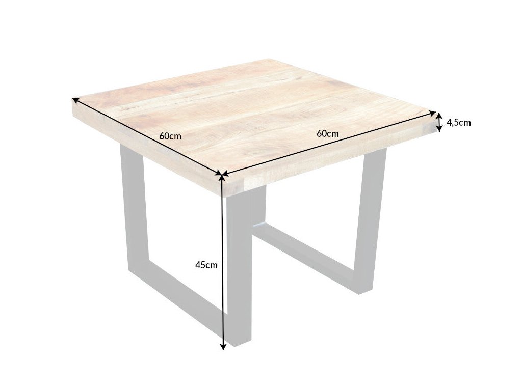 Čtvercový tvar a kompaktní rozměr 60 × 60 cm nabízí praktickou plochu pro každodenní využití – od odložení kávy až po dekorace. Skvěle zapadne do moderních, industriálních i rustikálních interiérů.