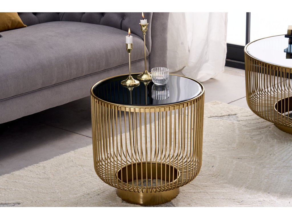 Konferenční stolek Linea Aura Gold 40cm zlatý s černým sklem