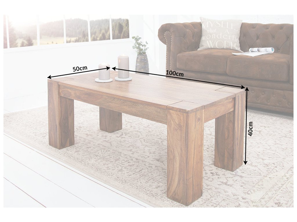 Obdélníkový tvar a rozměr 100 × 50 cm nabízí dostatek prostoru pro každodenní použití – ideální pro kávu, knihy i dekorace. Díky přírodnímu vzhledu se stolek skvěle hodí do moderních, rustikálních i designových interiérů.