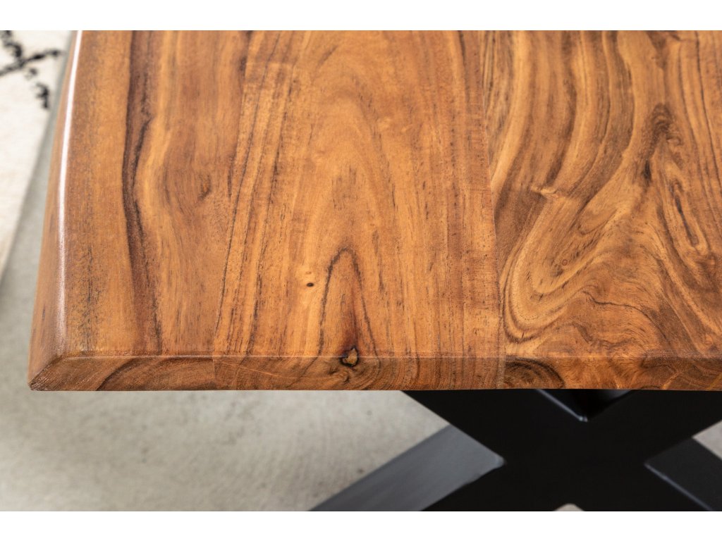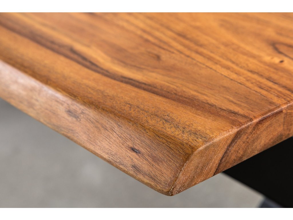 Konferenční stolek MAMMUT je vyroben z masivního akáciového dřeva, které vyniká svou přirozenou kresbou, pevností a dlouhou životností. Živá hrana desky podtrhuje jedinečný charakter každého kusu a dodává stolku autentický přírodní vzhled.