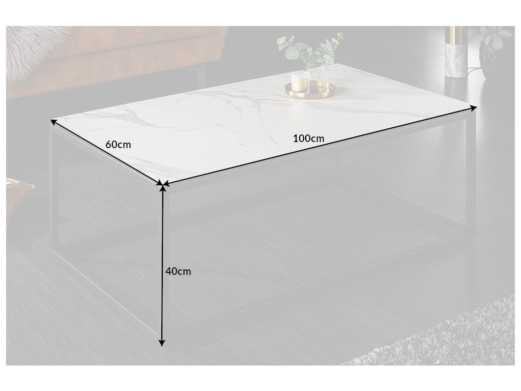Horní deska z keramiky na tvrzeném skle působí luxusně, zároveň je však vysoce odolná proti poškrábání, teplu i snadno se udržuje. Díky tomu je konferenční stolek vhodný nejen jako designový prvek, ale i jako plně funkční nábytek pro běžný provoz domácnosti.