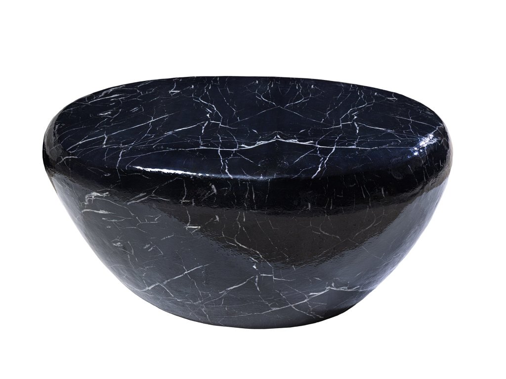 Tento konferenční stolek z kovové hliníkové slitiny zaujme svým masivním tvarem a hlubokým černým mramorovým dekorem, který dodává interiéru sofistikovaný charakter. Díky ruční výrobě je každý kus originál s jemnými odchylkami v kresbě povrchu. Lakovaný povrch zvýrazňuje strukturu materiálu a zároveň usnadňuje údržbu. Nízký, kompaktní tvar vytváří výrazný solitér, který se stane dominantou obývacího prostoru.