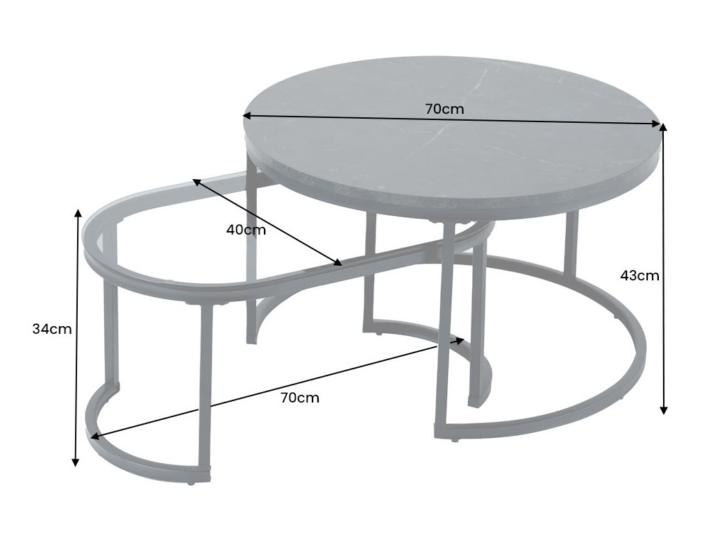 Konferenční stolek ORBIT BLACK 70cm sada 2 ks Mramorový vzhled