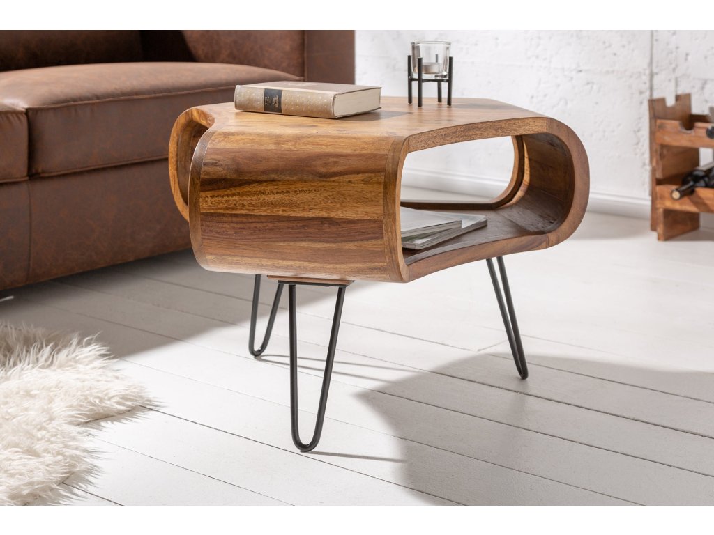 Masivní sheeshamové dřevo je odolné, pevné a snadné na údržbu. Otevřený úložný prostor zvyšuje praktičnost stolku při každodenním používání, aniž by narušoval jeho čistý design.