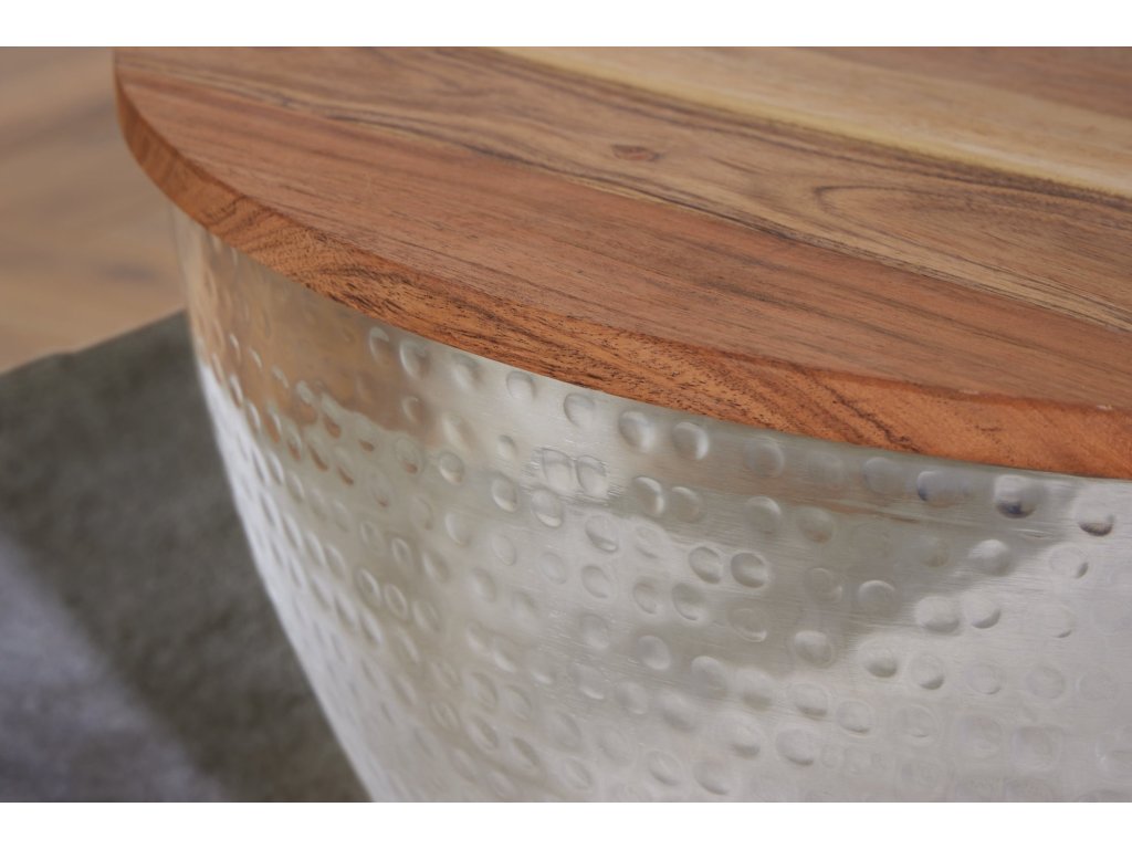 Konferenční stolek ORIENT STORAGE 60cm horní deska z akáciového dřeva na pantech stříbrná podnož
