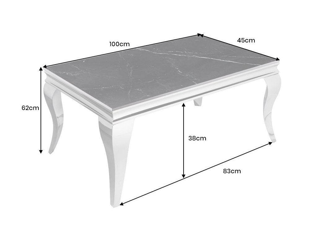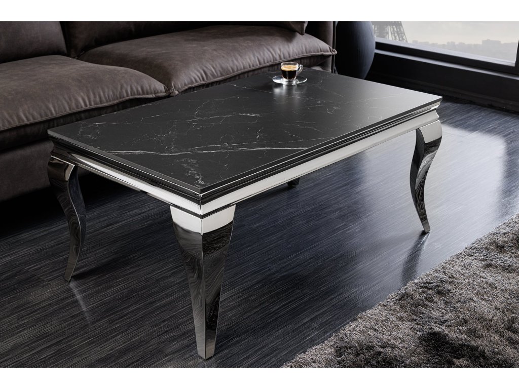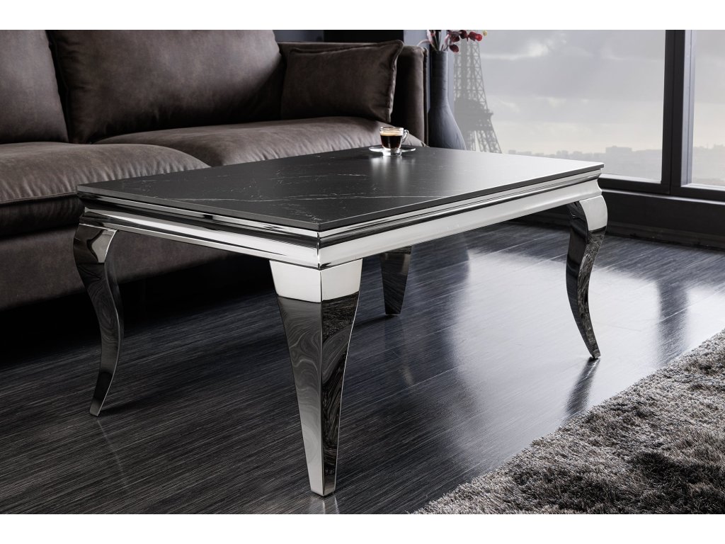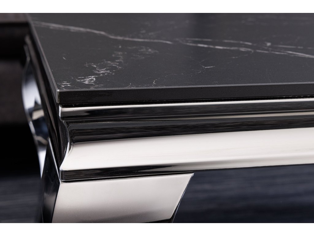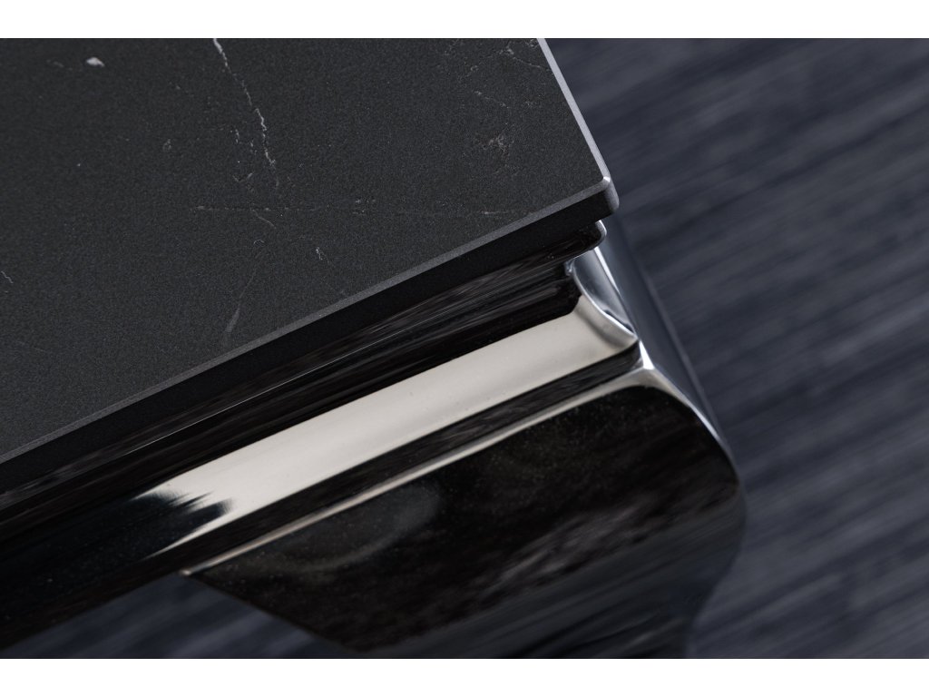 Tento konferenční stolek kombinuje slnitý kámen v tmavém mramorovém vzhledu s precizně tvarovanými nerezovými nohami v lesklém chromu. Výsledkem je výrazný, ale vyvážený kus nábytku, který se hodí do elegantních a reprezentativních interiérů. Jemně profilované nohy dodávají stolku lehkost a lehce klasický nádech, zatímco tmavá deska zachovává moderní charakter. Odolný povrch je vhodný pro každodenní používání a snadnou údržbu.