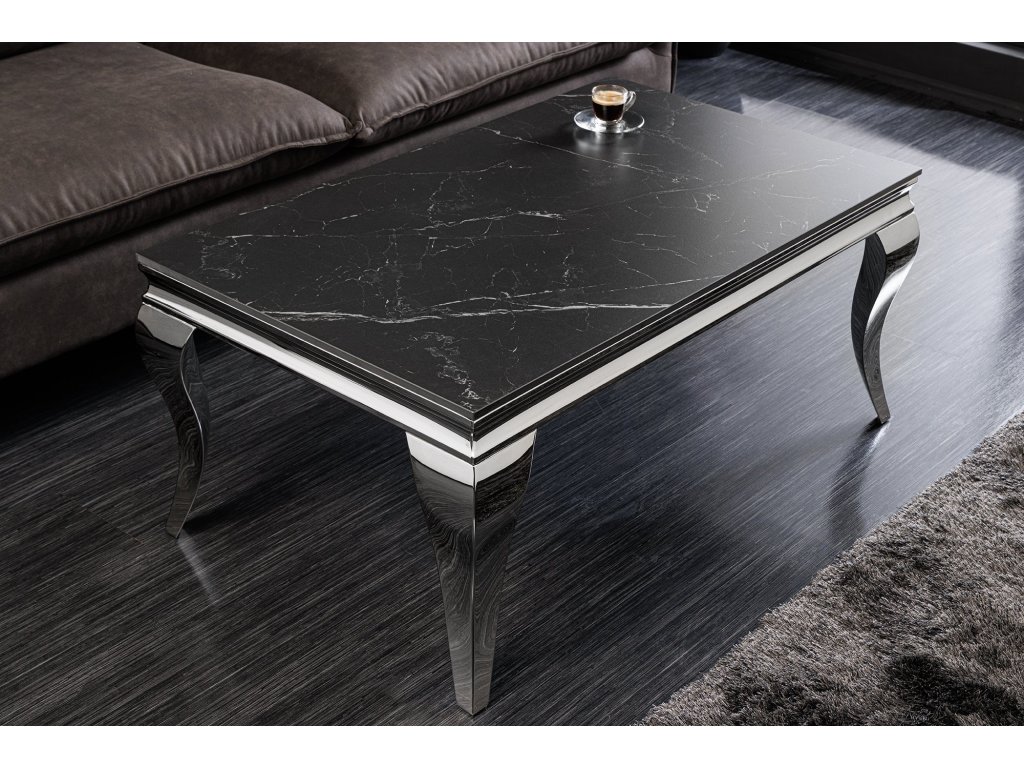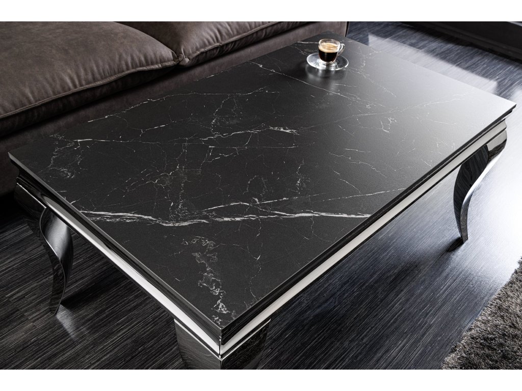 Konferenční stolek REGALIA NOIR – slinutý kámen, nerezové nohy 100 cm