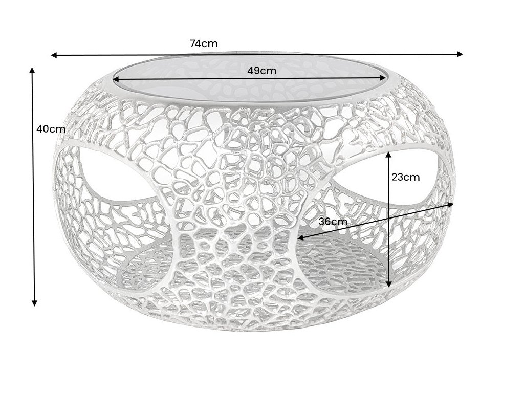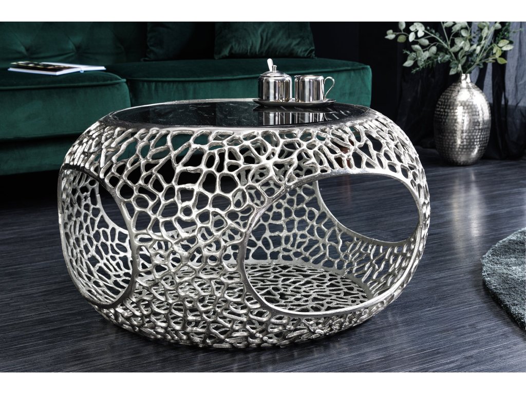 Tento konferenční stolek zaujme na první pohled svou tvarovanou kovovou konstrukcí, inspirovanou přírodními strukturami. Jemně proplétaný design působí lehce, vzdušně a zároveň luxusně. Každý pohled odhaluje nový detail a dává stolku jedinečný charakter.