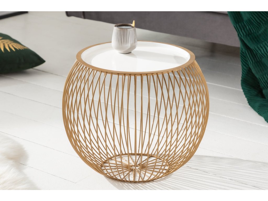 Konferenční stolek STORAGE 40cm zlatý s odnímatelnou deskou bílá