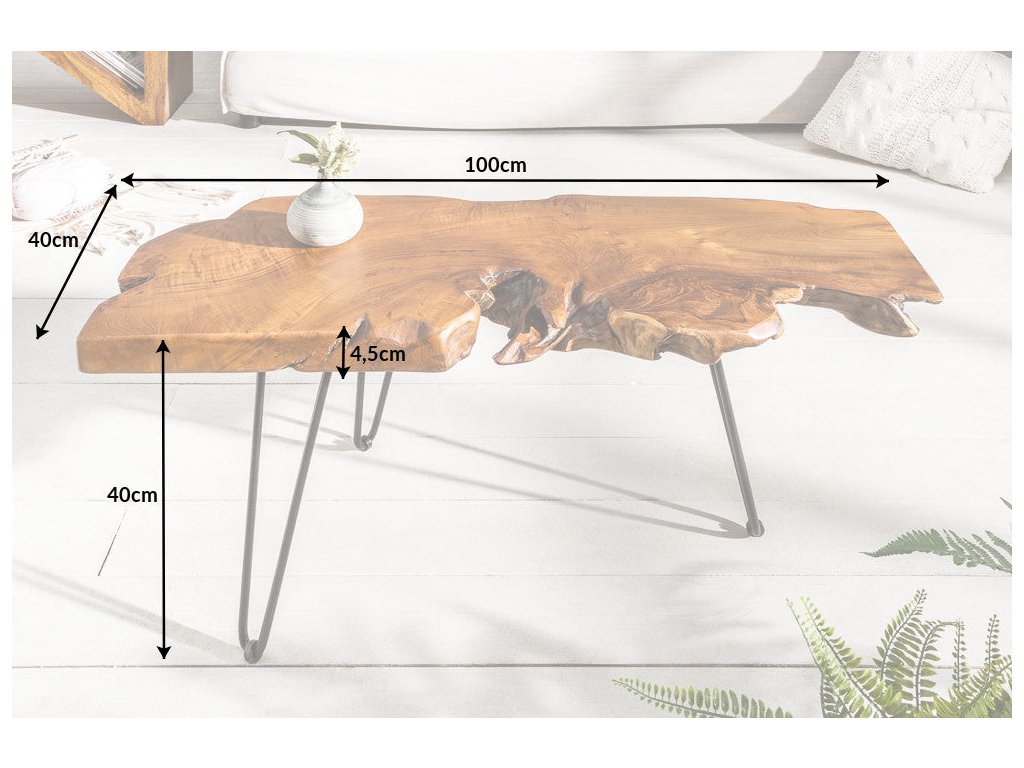 Kombinace masivní dřevěné desky a kovových nohou v černém provedení vytváří harmonický kontrast mezi přírodním a industriálním stylem. Rozměr 100 × 40 cm poskytuje dostatek prostoru pro každodenní používání – od kávy po dekorace – a zároveň působí lehce a vzdušně. Ideální volba do moderních, industriálních i designových obývacích pokojů.
