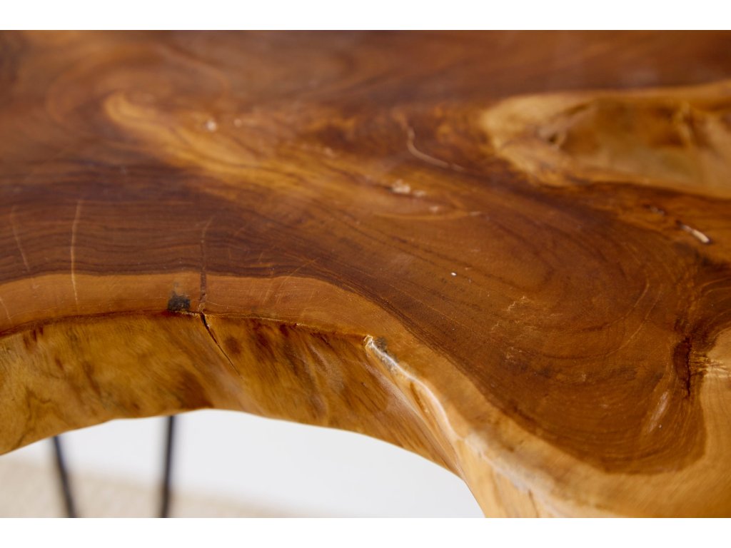 Konferenční stolek WILD je vyroben z masivního teakového dřeva, které patří mezi nejodolnější dřeviny vůbec. Nepravidelný tvar horní desky zachovává přirozený charakter dřeva, včetně unikátních linií a tvarů, které dělají z každého stolku jedinečný kus.