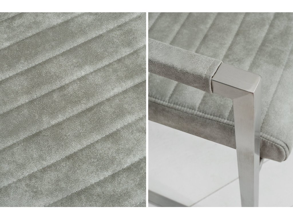 Dominantní barva sedáku: šedá dodá prostoru příjemný výraz a dobře se kombinuje s přírodními i kontrastními tóny. Design odpovídá stylu loftový, moderní, takže židle dobře zapadne do současných domácností i modernějších provozů. Povrch sedáku z materiálu mikrovlákno je příjemný na dotek a při běžném používání praktický na údržbu. Konstrukce s nohami z nan přidává stabilitu a pevný posed. Židle je bez područek, díky čemuž se snadno zasune pod stůl a šetří místo u jídelního setu.