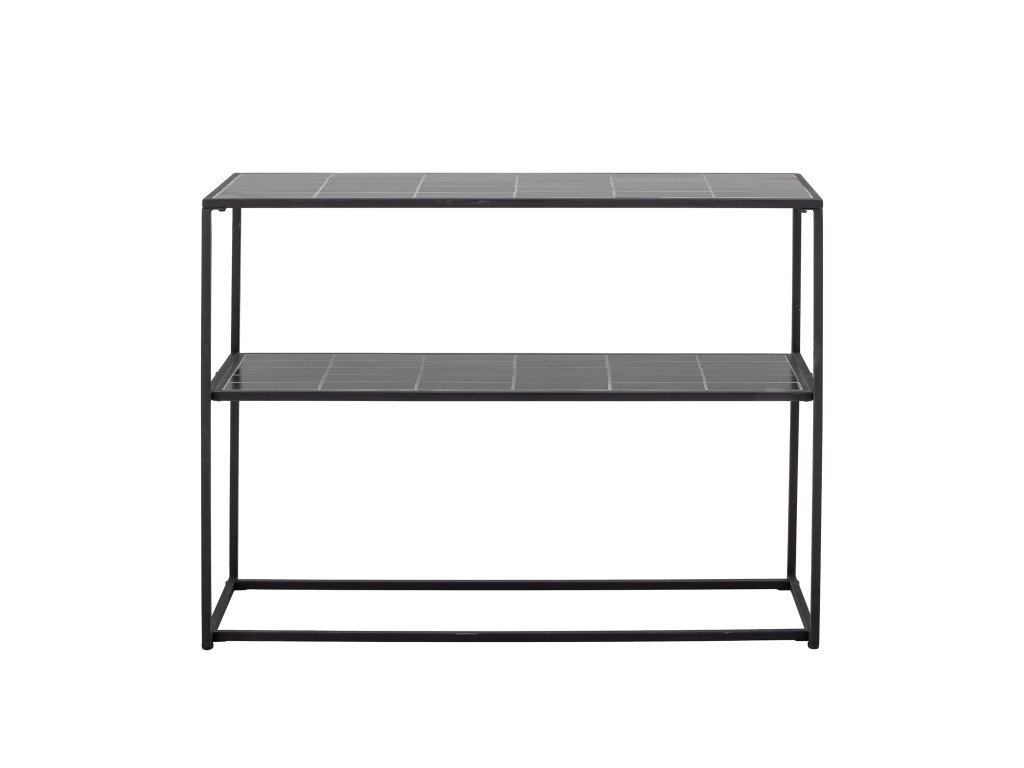 Konzolový stolek June od společnosti Bloomingville je nádherný kus nábytku. Konzola je vyrobena z černého kamene a kovu, kde rovné linie dodávají severský a nadčasový nádech. Na horní i spodní polici má mozaiku z keramiky a každá police unese maximální hmotnost dvacet kilogramů.Doplňkové parametry