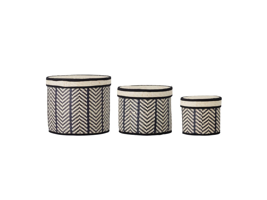 Tyto koše se dodávají v sadách po dvou kusech. Jsou vyrobeny z mořské trávy a palmových listů, které jsou vypleteny do krásného vzoru s využitím přírodních barev materiálu. Díky různým velikostem jsou tyto koše velmi univerzální a mohou obsahovat mnoho různých věcí. Od drobností až po předměty na házení nebo třeba jako květináč. Bez ohledu na to, k čemu koš použijete, dodají materiály a vzor organický a uvolněný vzhled každé místnosti.Doplňkové parametry