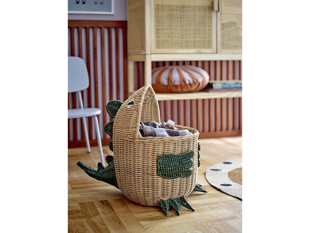 Koš Eddi od Bloomingville MINI je roztomilý úložný koš z ratanu ve tvaru dinosaura. Koš je ideální pro uložení všech věcí v obývacím pokoji, ložnici nebo v dětském pokoji.Doplňkové parametry