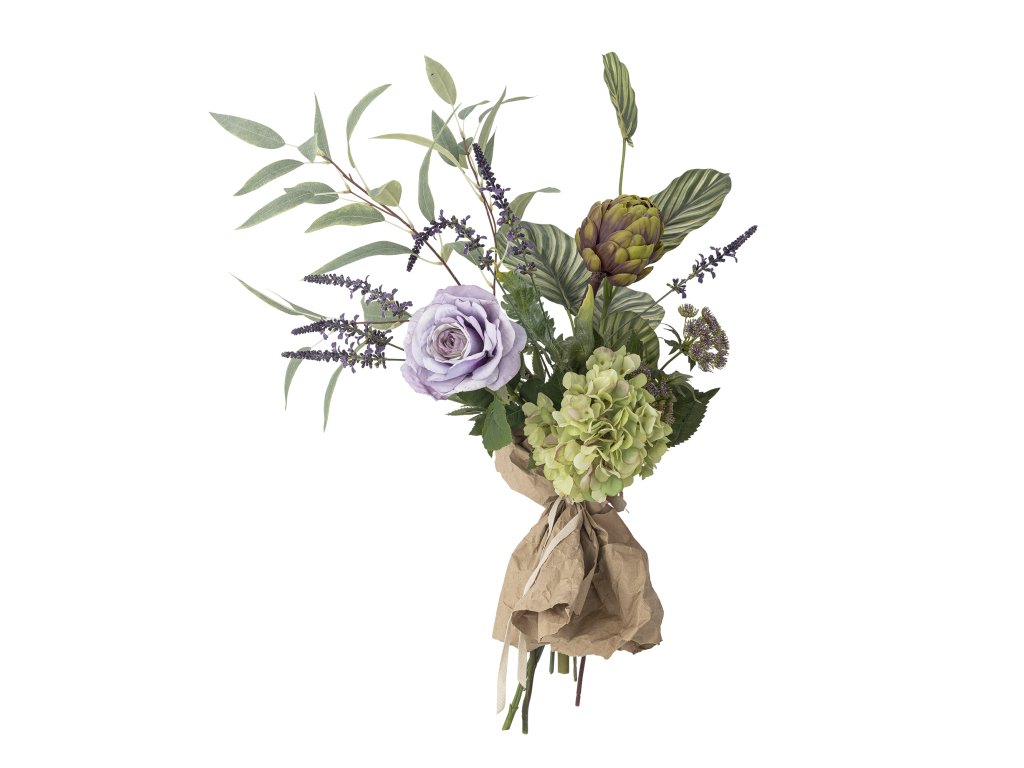 Umělá kytice Whisper od Bloomingville je díky tlumeným fialovým a zeleným barvám jako tajemství, které tiše promlouvá na pozadí soumračné oblohy. Je to intimní aranžmá, které jako by vyprávělo příběh tichých okamžiků a jemné krásy. Jako šepot naznačuje pocit klidu a ticha, podobně jako ztichlá atmosféra za soumraku, kdy se zdá, že svět zpomaluje a promlouvá tlumenými tóny. Před použitím stonky zastřihněte a vytvarujte, aby vynikl přirozený vzhled kytice a přizpůsobte je svému osobnímu interiéru. Baleno v papíru. Váza není součástí balení.Doplňkové parametry