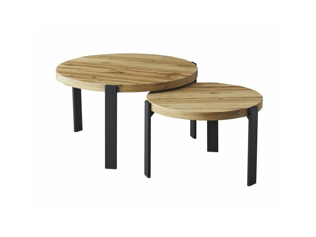 Sada konferenčních stolků POLO nabízí moderní a funkční řešení do každého obývacího pokoje. Díky provedení v dekoru dub artisan v kombinaci s černým kovovým rámem působí nadčasově a snadno se kombinuje s dalšími kusy nábytku. Větší stolek má průměr 80 cm a výšku 45 cm, menší stolek Ø60 cm a výšku 40 cm, což umožňuje variabilní využití – dohromady i samostatně.