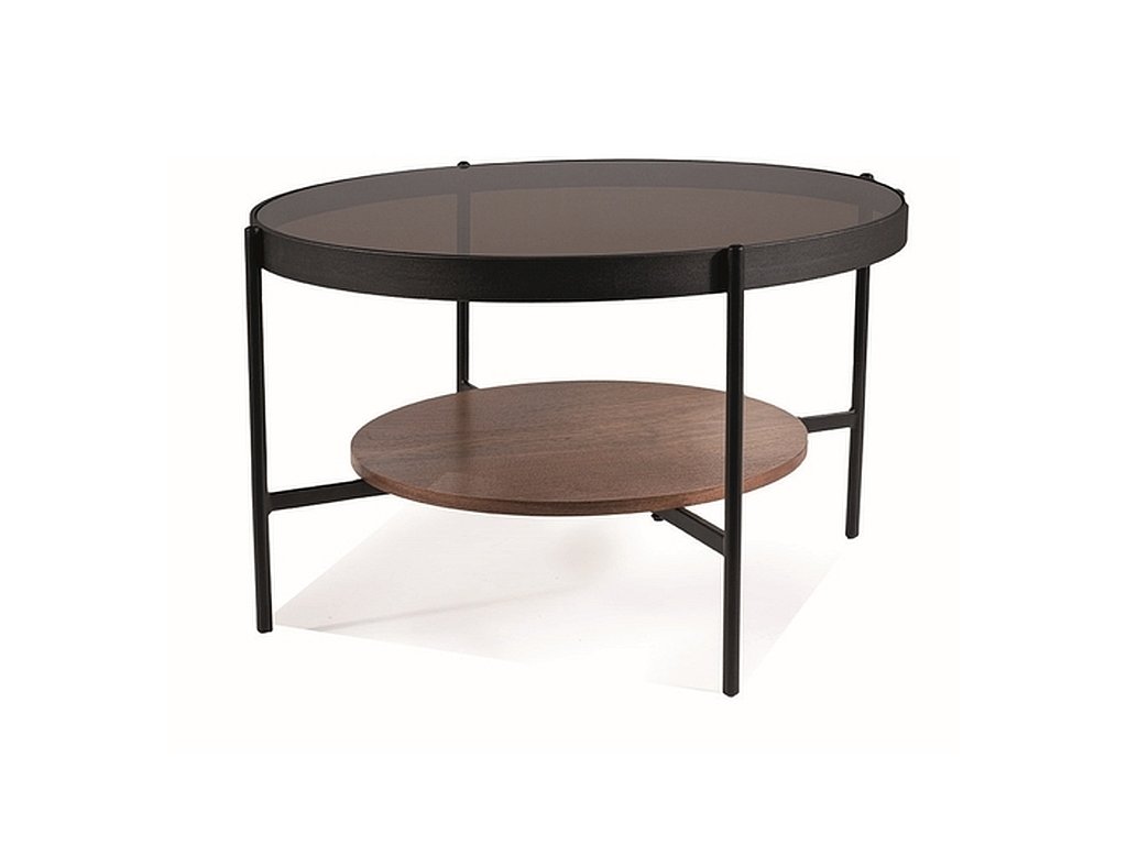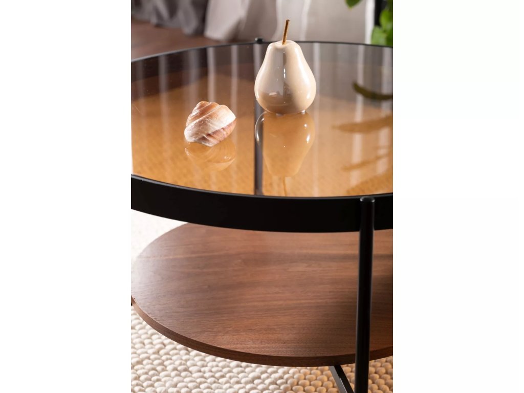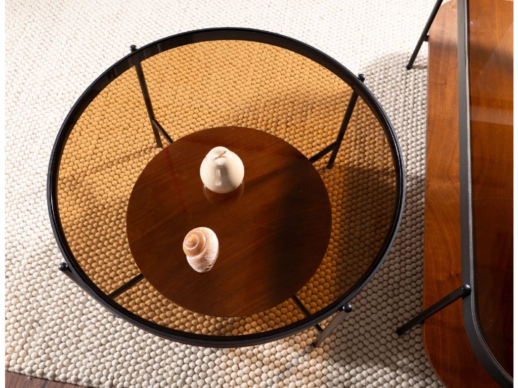Konferenční stolek Prima B Ø74×43 cm – jantarové sklo / přírodní dýha / černá matná