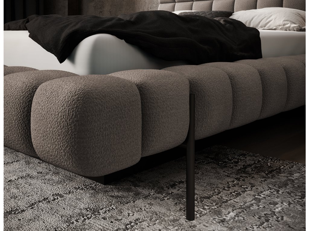 Postel Magentta je spojením moderního designu, funkčnosti a výjimečného komfortu. Díky čalouněnému zadnímu čelu působí postel velmi elegantně a dodává každé ložnici útulný charakter. Pevná konstrukce a opěradlo vyplněné pěnou T2130 poskytují vynikající oporu a pohodlí jak během spánku, tak při odpočinku. Model je dostupný ve třech velikostech: 140 cm, 160 cm a 180 cm, což umožňuje přizpůsobit jej velikosti místnosti i individuálním preferencím. Rám z kovu obsahuje až 36 lamel, které rovnoměrně podpírají matraci, čímž zvyšují odolnost konstrukce a komfort užívání. Černá kovová noha tvoří pevnou základnu a zdůrazňuje minimalistický, moderní charakter postele. Další výhodou je úložný prostor na ložní prádlo, který umožňuje praktické uskladnění peřin, polštářů nebo jiných textilií a šetří tak místo v místnosti. Postel Magentta je ideální volbou pro ty, kteří oceňují moderní styl, pohodlí a funkční řešení.Doplňkové parametry