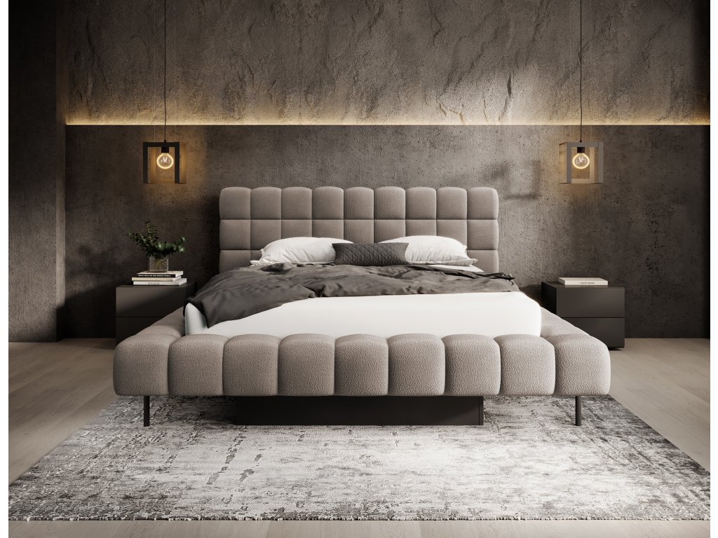 Postel Magentta je spojením moderního designu, funkčnosti a výjimečného komfortu. Díky čalouněnému zadnímu čelu působí postel velmi elegantně a dodává každé ložnici útulný charakter. Pevná konstrukce a opěradlo vyplněné pěnou T2130 poskytují vynikající oporu a pohodlí jak během spánku, tak při odpočinku. Model je dostupný ve třech velikostech: 140 cm, 160 cm a 180 cm, což umožňuje přizpůsobit jej velikosti místnosti i individuálním preferencím. Rám z kovu obsahuje až 36 lamel, které rovnoměrně podpírají matraci, čímž zvyšují odolnost konstrukce a komfort užívání. Černá kovová noha tvoří pevnou základnu a zdůrazňuje minimalistický, moderní charakter postele. Další výhodou je úložný prostor na ložní prádlo, který umožňuje praktické uskladnění peřin, polštářů nebo jiných textilií a šetří tak místo v místnosti. Postel Magentta je ideální volbou pro ty, kteří oceňují moderní styl, pohodlí a funkční řešení.Doplňkové parametry