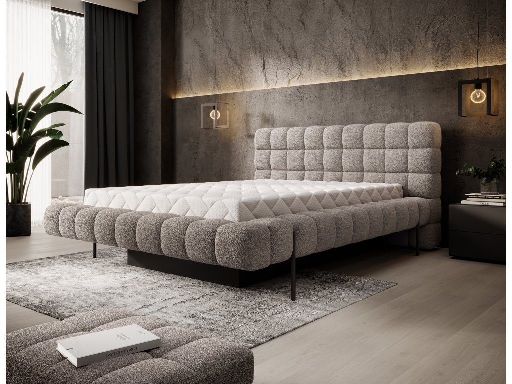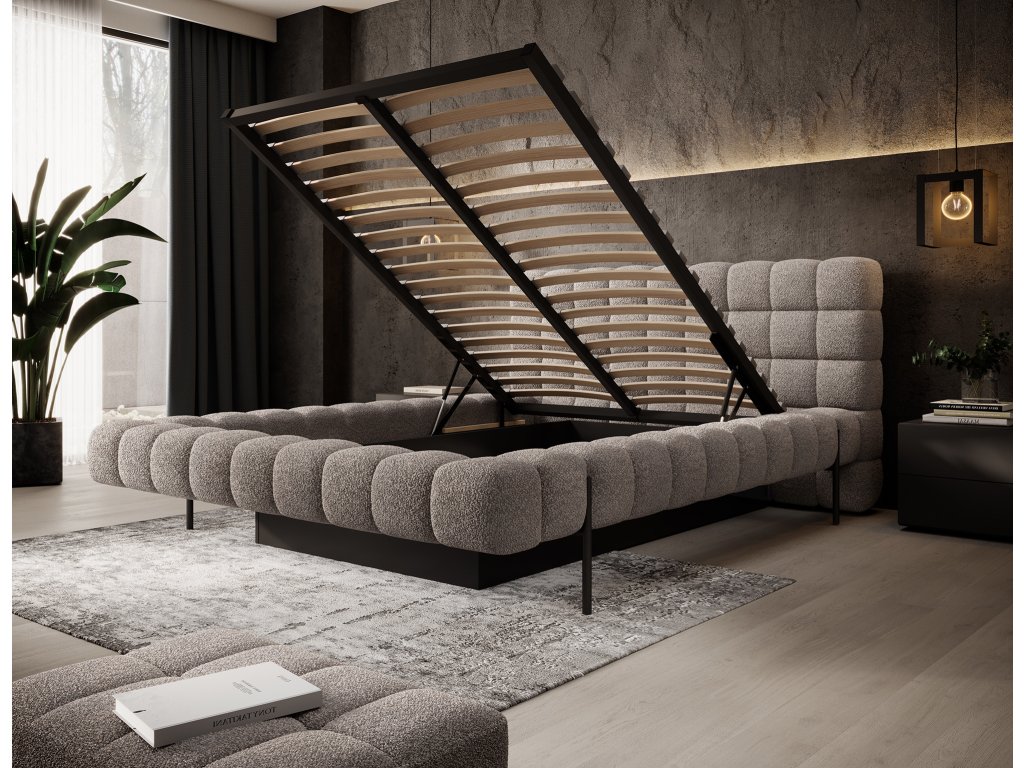 Postel Magentta je spojením moderního designu, funkčnosti a výjimečného komfortu. Díky čalouněnému zadnímu čelu působí postel velmi elegantně a dodává každé ložnici útulný charakter. Pevná konstrukce a opěradlo vyplněné pěnou T2130 poskytují vynikající oporu a pohodlí jak během spánku, tak při odpočinku. Model je dostupný ve třech velikostech: 140 cm, 160 cm a 180 cm, což umožňuje přizpůsobit jej velikosti místnosti i individuálním preferencím. Rám z kovu obsahuje až 36 lamel, které rovnoměrně podpírají matraci, čímž zvyšují odolnost konstrukce a komfort užívání. Černá kovová noha tvoří pevnou základnu a zdůrazňuje minimalistický, moderní charakter postele. Další výhodou je úložný prostor na ložní prádlo, který umožňuje praktické uskladnění peřin, polštářů nebo jiných textilií a šetří tak místo v místnosti. Postel Magentta je ideální volbou pro ty, kteří oceňují moderní styl, pohodlí a funkční řešení.Doplňkové parametry