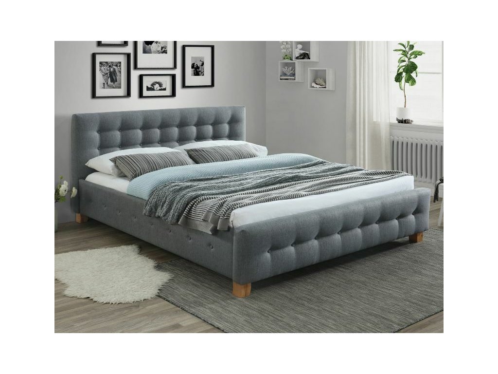 Postel, látka, barva: šedá, čalounění 23. Rám s elastickými lamelami upevněnými v flexibilních úchytech součástí balení. Přídavný nosník zpevňující střed rámu. Rozměr matrace: 160x200cm (cena bez matrace).