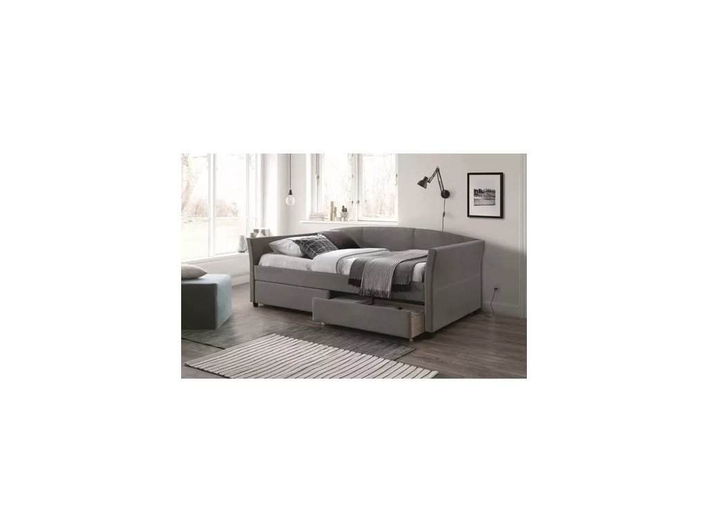Postel se dvěma zásuvkami, látka, barva: šedá, čalounění 54. Dřevěný lamelový rošt součástí dodávky. Rozměr matrace: 90x200cm (cena bez matrace).