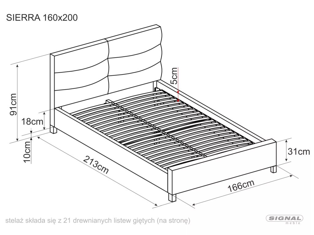 Rozměry postele: A - 213, B - 166, C - 160x200, D - 10, E - 5, F - 18, G - 31, H - 91 cm.