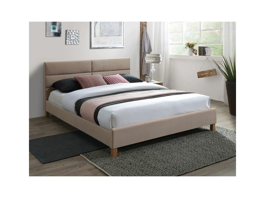 Postel, samet, barva: béžová, čalounění Bluvel 28, včetně rámu s pružinovými lamelami upevněnými v flexibilních rukojetích. Rozměr matrace 160x200cm (cena bez matrace).