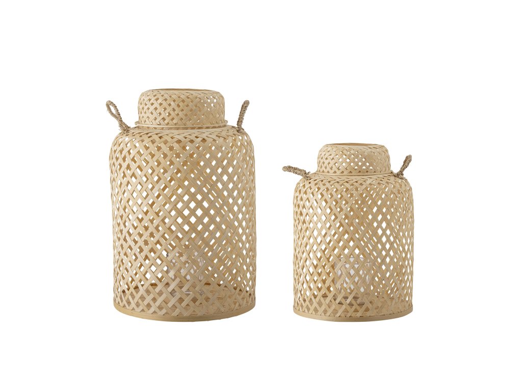 Lucerna Madlin se sklem od společnosti Bloomingville je sada 2 nových a moderních interpretací klasické lucerny. Tyto designy jsou vyrobeny z černých bambusových provázků a spleteny do krásného tvaru, který krásně rámuje plameny uvnitř a dodává jim třpytivý efekt. Uvnitř lucerny je skleněná vložka pro svíčky, která chrání plamen před větrem, který by jinak plamen sfoukl.Doplňkové parametry